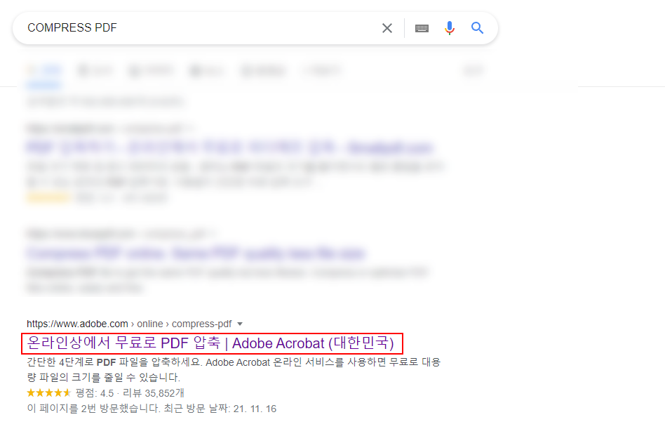 먼저 위의 사진처럼 검색 기능이 있는 포털 사이트에 'compress PDF'라고 검색을 해주세요.