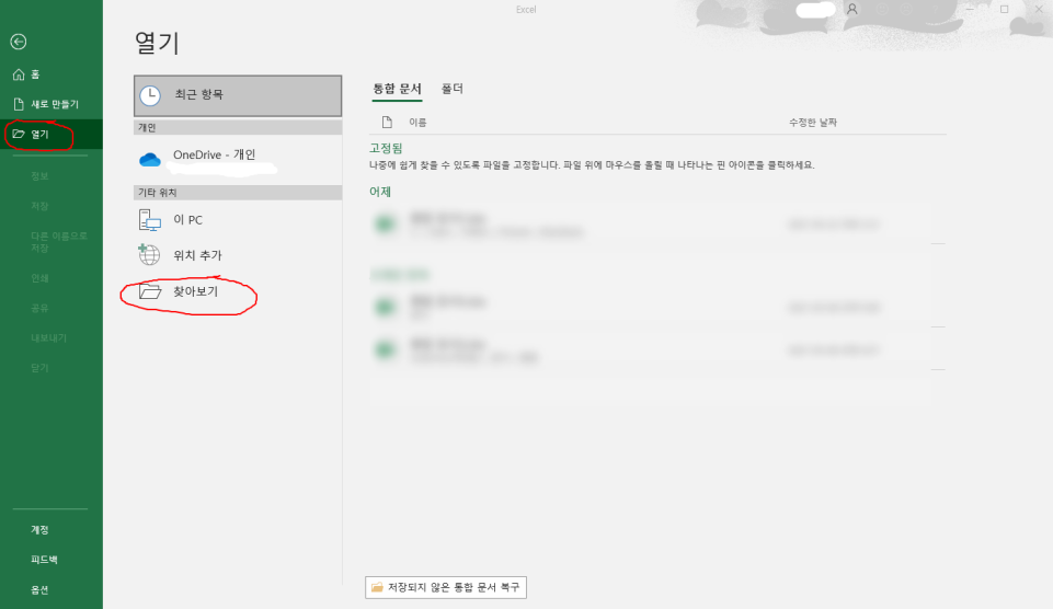 또는 또 다른 문서 복구 방법이 있습니다. 바로 자동 저장입니다. 이는 열기 탭의 맨아래의 버튼을 클릭하면 됩니다.