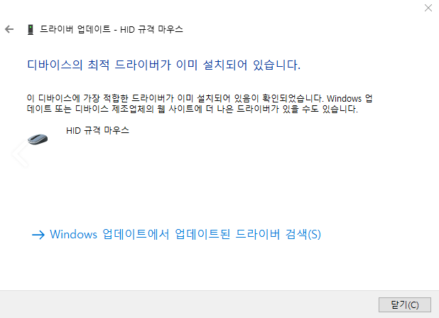 만약 이미 최신 마우스 드라이버가 설치되어 있다면, 위의 사진과 같이 나올 겁니다.