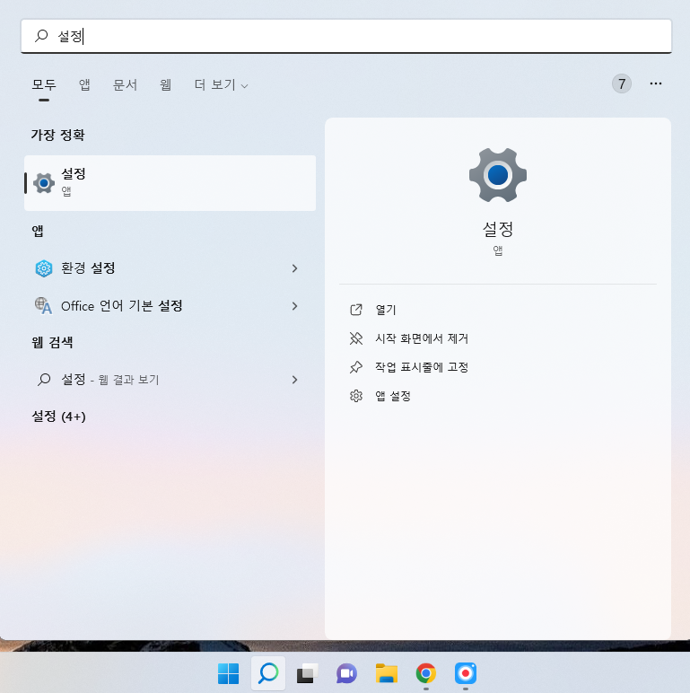 그러면 위처럼 '설정' 앱이 나올 겁니다. 'Enter'키를 눌러주세요.