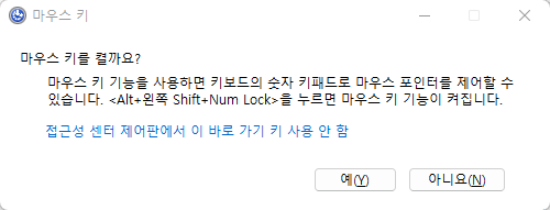 그리고 이렇게 활성화한 화상 마우스는 키보드 오른쪽의 숫자 키패드를 이용해서 제어할 수 있습니다.