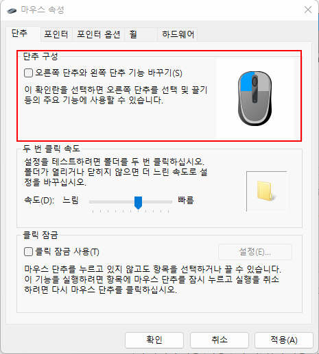 만약 자신이 더블클릭이 정상적으로 되지 않는 상태라면 이를 통해서 해결할 수 있습니다.