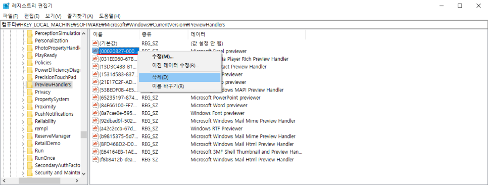 컴퓨터\HKEY_LOCAL_MACHINE\SOFTWARE\Microsoft\Windows\CurrentVersion\PreviewHandlers