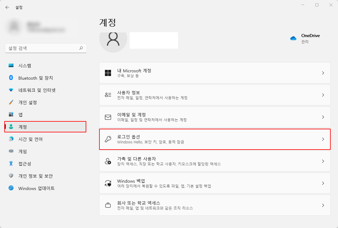 클릭한 다음, 우측에 있는 여러 옵션들 중에 '로그인 옵션'을 클릭하도록 합시다.