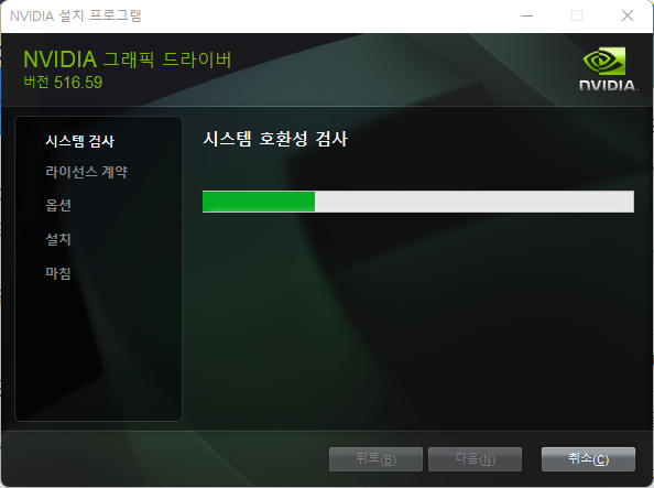 이 창에서 하단의 '다음(N)' 버튼을 클릭해서 진행하면 그래픽 카드가 업데이트되죠.
