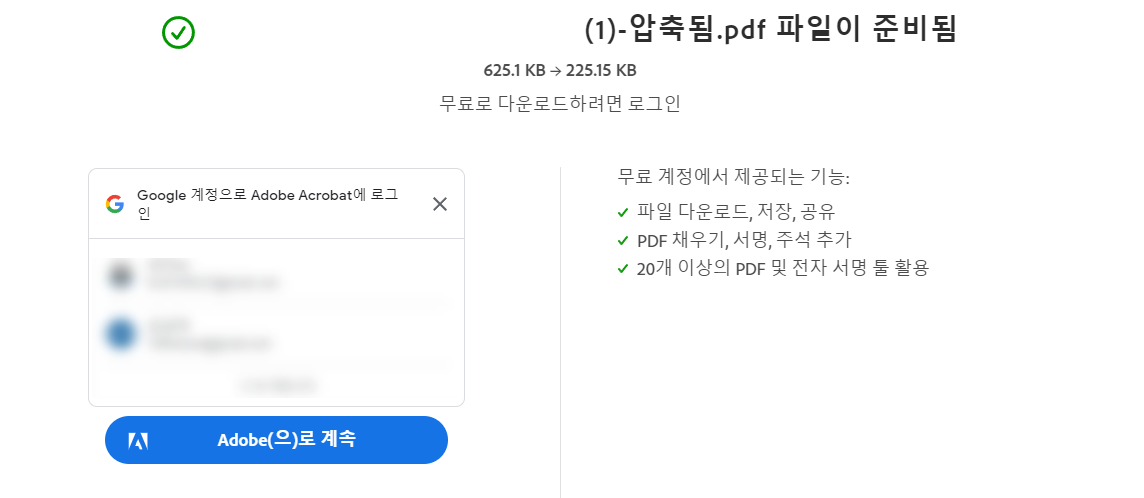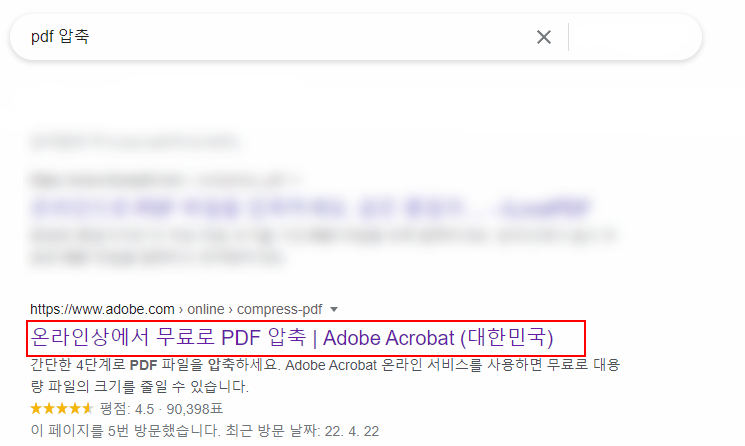 이렇게 어도비의 '온라인상에서 무료로 PDF 압축'이라는 결과물이 있을 겁니다.
