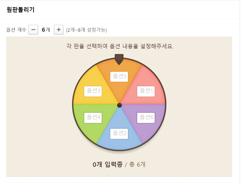먼저 링크로 들어가시면 바로 룰렛을 플레이 하실 수 있으며 상단에 옵션 갯 수가 있습니다.