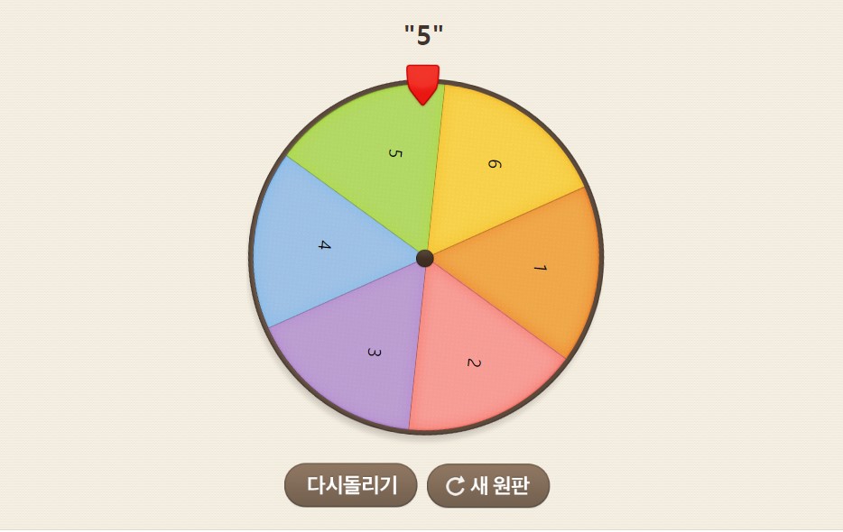 그리고 룰렛을 돌리면 끝입니다. 다시 돌리려면 다시 돌리기를 누르시고 새 원판을 만들 실려면 새 원판 버튼을 눌러주시면 됩니다.