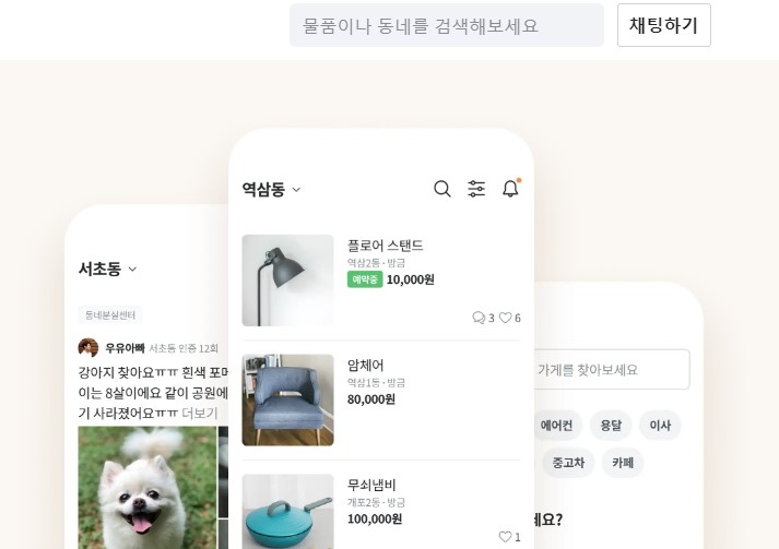 중고 거래부터 동네 정보까지, 이웃과 함께해요. 가깝고 따뜻한 당신의 근처를 만들어요.