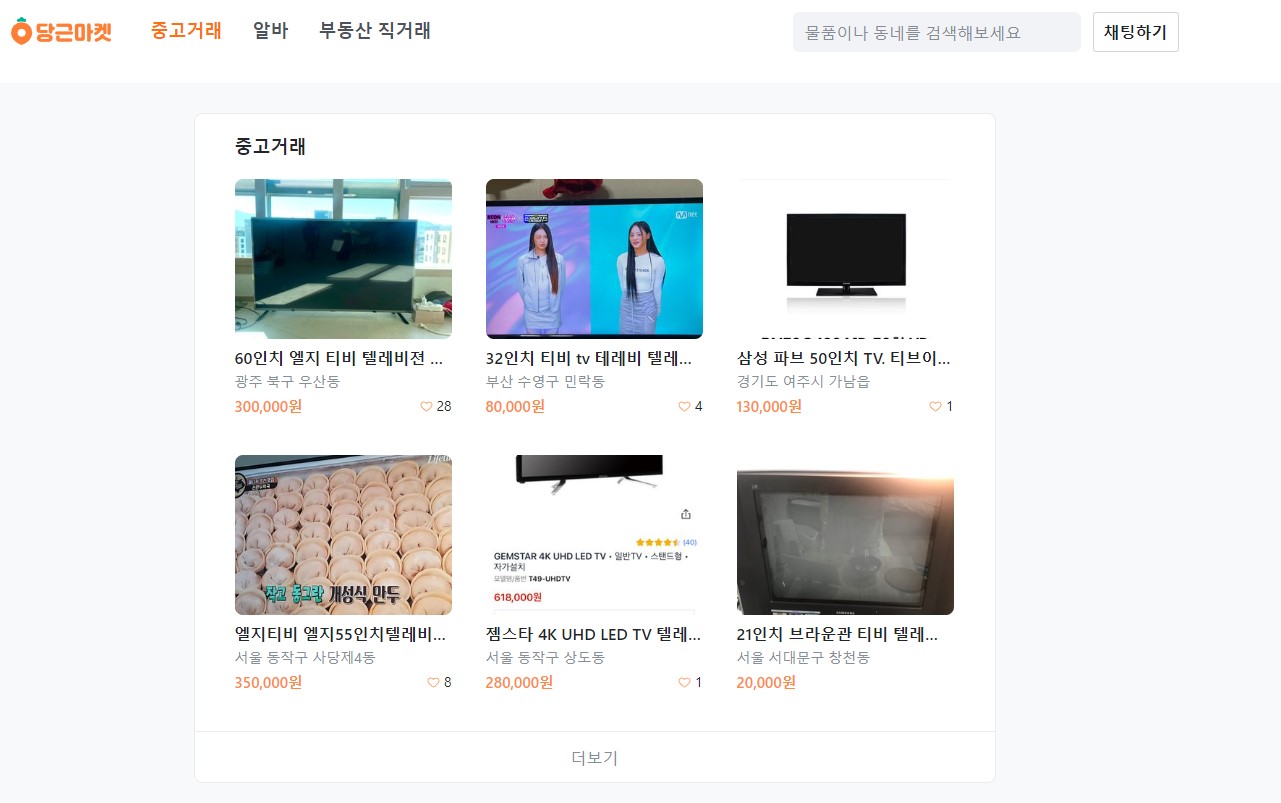 pc버전에서는 주로 당근채팅을 많이 이용하며 중고거래 매물보기는 모바일 버전보다 약간 불편하실 수 있습니다. 그래도 모바일에서 사용 하듯이 pc 버전에서도 왠만한 기능은 다 사용이 됩니다. 모임, 후기, 분실, 커뮤니티 등등