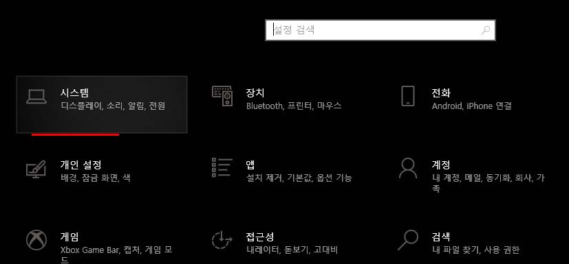 설정창 첫 번째 줄에 있는 시스템으로 들어가 줍니다.