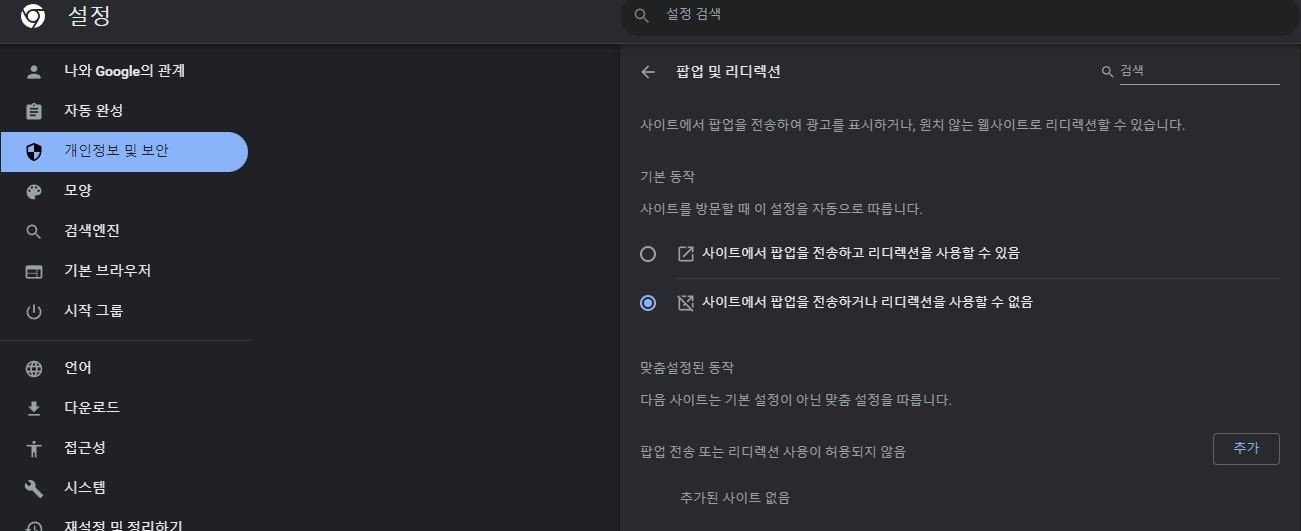 크롬 팝업 차단 설정하기