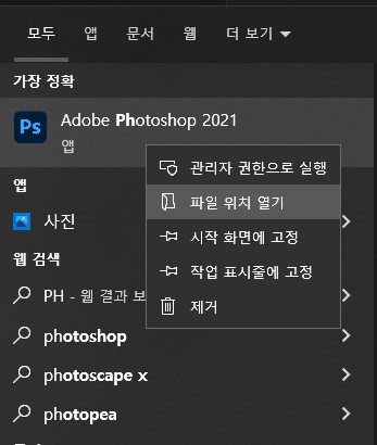 프로그램 위치 들어가는 방법은 좌측 하단 윈도우 검색 바로 해당 프로그램을 입력하여 찾은 뒤, 마우스 우클릭하여 '파일 위치 열기'를 클릭하여 주시면 됩니다.