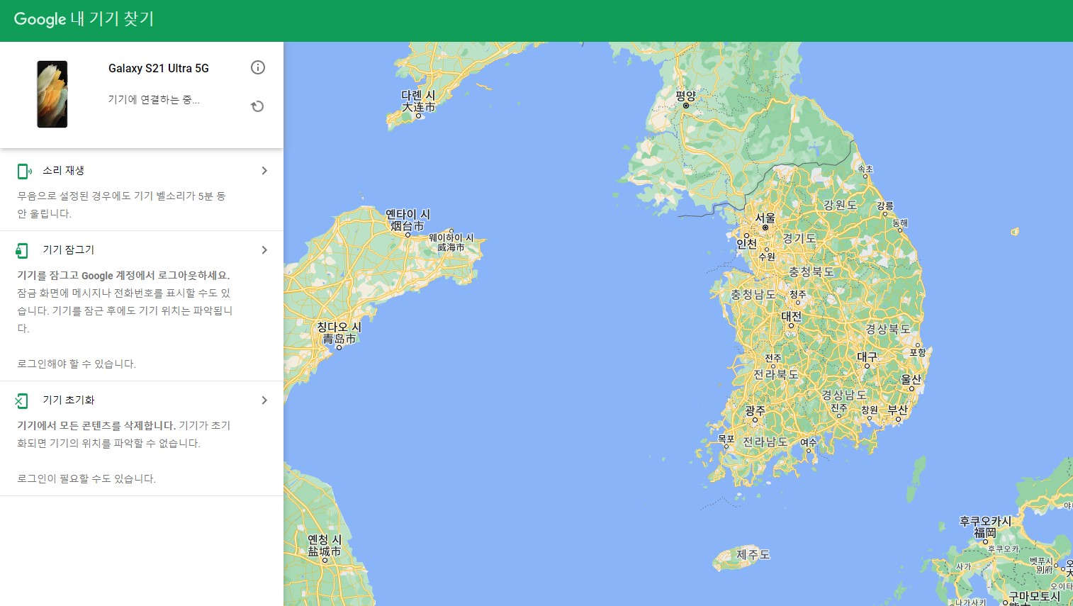 추가로 이 기능들은 휴대전화가 꺼져 있을 시 사용 불가능합니다. 꺼져 있다면 마지막 위치가 나오며, 오프라인 기기 찾기 센터 시스템을 이용하시면 되겠습니다.