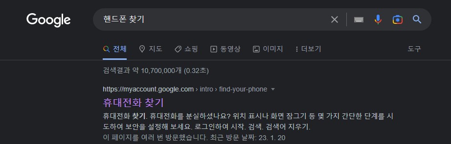 들어가는 방법은 컴퓨터에서 구글 검색에 '휴대전화 찾기'를 입력하여 치시면 상단에 나옵니다. 들어가 주시면 되겠습니다.