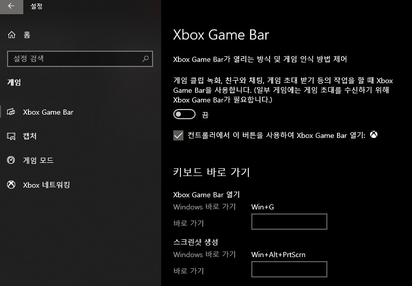 먼저 윈도우 키를 눌러 전원 버튼 위에 있는 설정으로 들어가신 다음 메뉴에서 '게임 모드'를 선택해 줍니다. 그리고 게임 모드를 끔에서 켬으로 바꿔 주시고 좌측 메뉴바에서 'xbox game bar'를 선택하여 xbox game bar를 끔으로 변경해 주시면 되겠습니다.