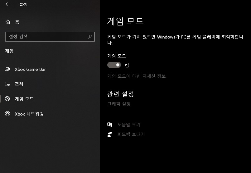 윈도우에서는 게임을 최적화하기 위한 설정이 있습니다. 이것을 켜주면 게임 성능이 다소 향상되실 겁니다.