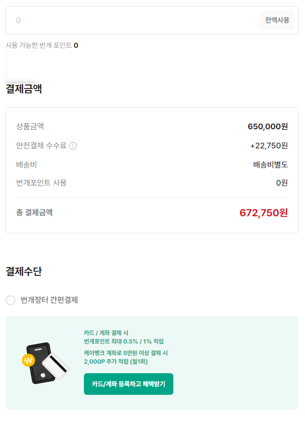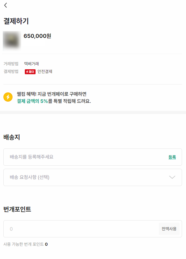 이 안전결제의 내용은 '상품을 받기 전까지, 번개페이에서 금액을 보관하는 것'입니다.