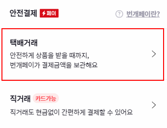 이 창에서 첫번째 '택배거래'라는 것이 있는데, 이게 바로 안전결제입니다.