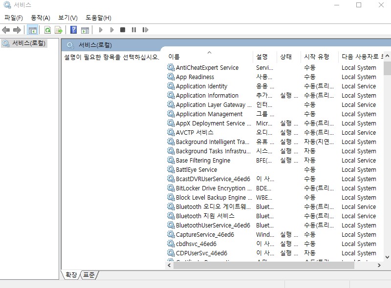 이렇게 하시면 서비스 창에서 블루투스 기능이 활성화가 됩니다.