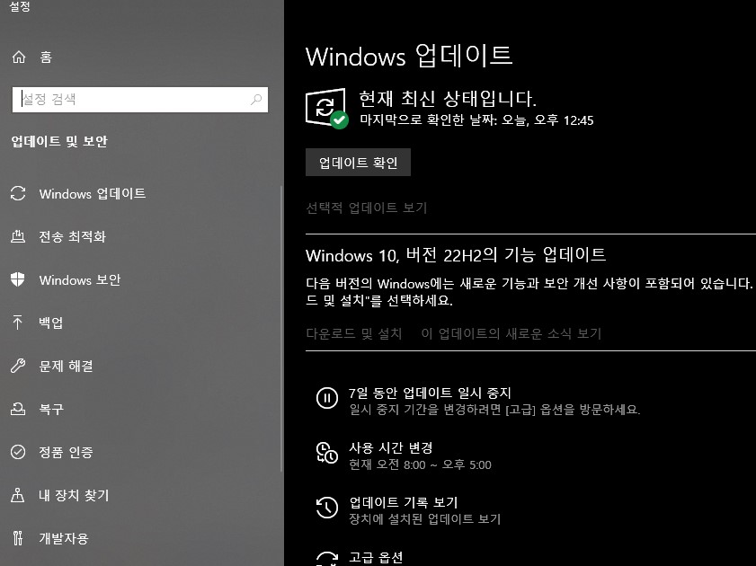 윈도우10 업데이트하기
