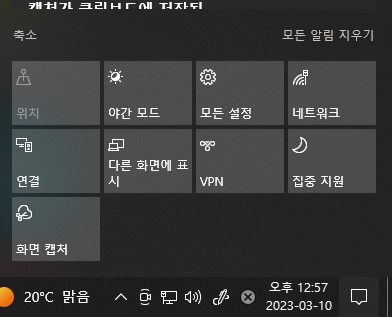 확인 방법은 윈도우 우측 하단에서 알림판 아이콘을 클릭하여 확인할 수 있습니다.
