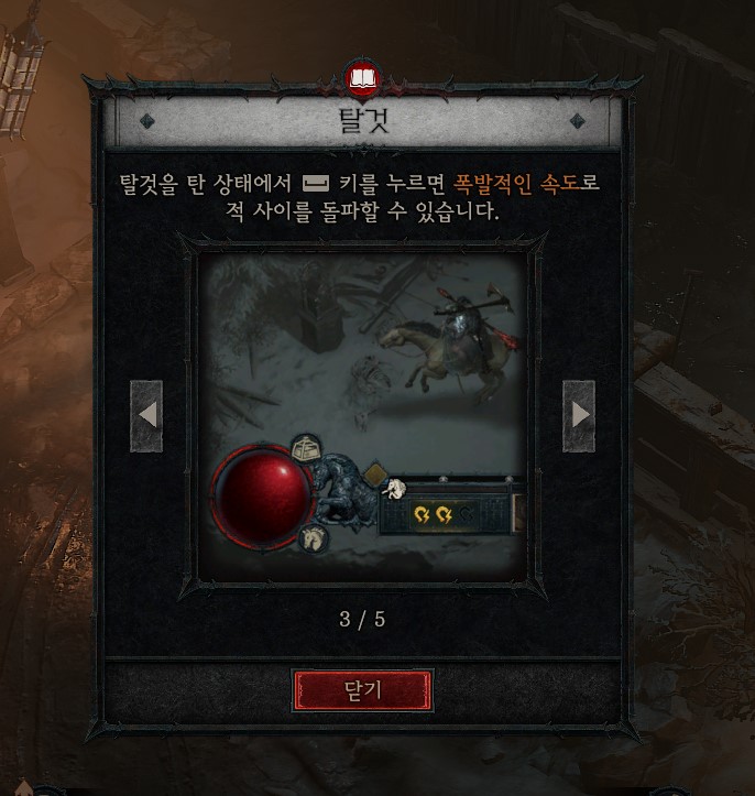 디아블로4에서 탈것을 탄 상태에서 스페이스 바 키를 누르면 폭발적인 속도로 적사이를 돌파할 수 있습니다.