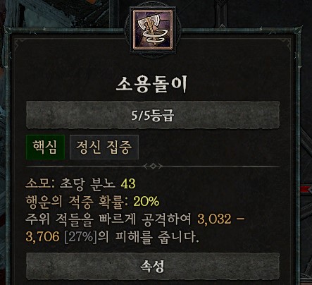 핵심 스킬 피해: 소용돌이가 더 세집니다.