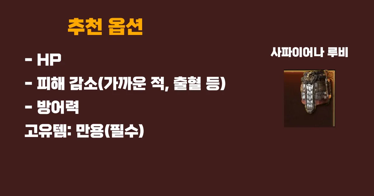 피해 증가(가까운, 출혈 등): 필수는 아니지만 쓸만한 옵션.