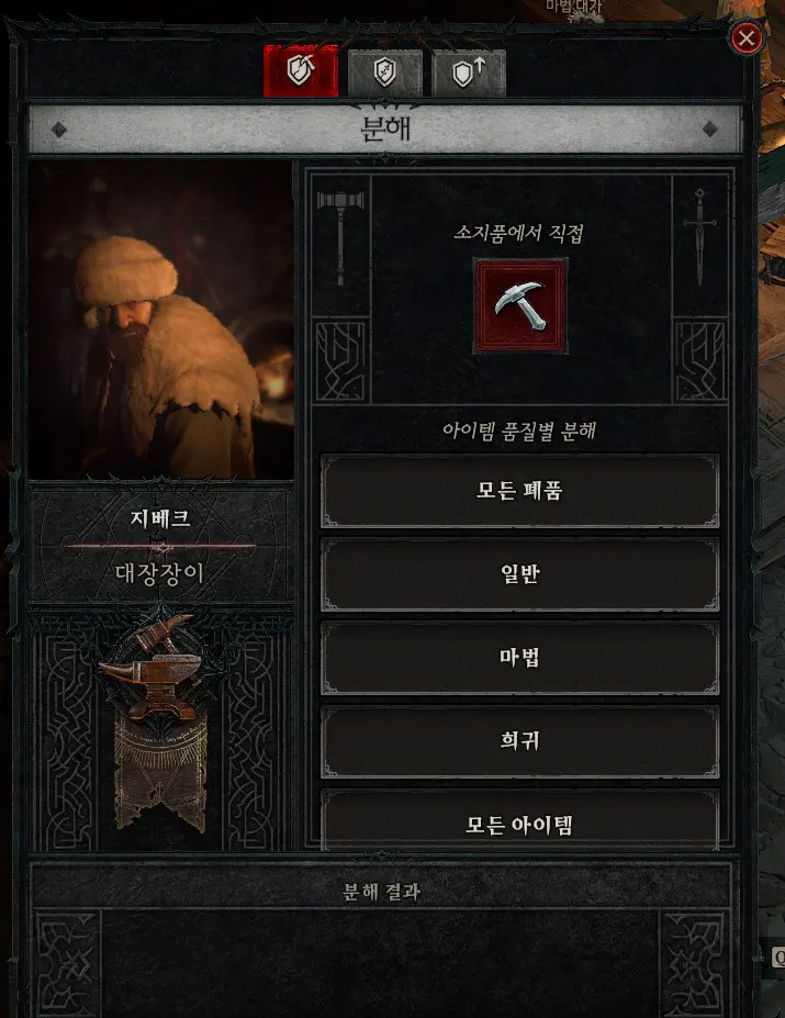 장비 분해는 희귀부터