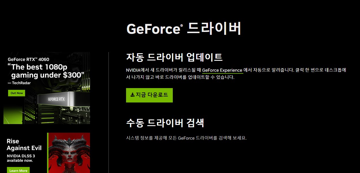 3) 그래픽카드 드라이버 업데이트 및 설치(듀얼 모니터만 해당)