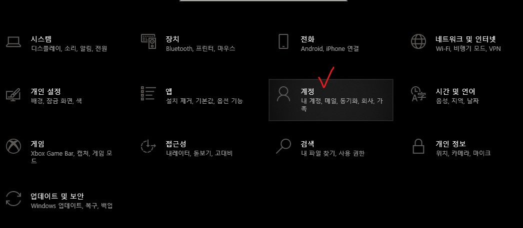 ○ 설정 창 중단에 있는 '계정'을 클릭합니다.