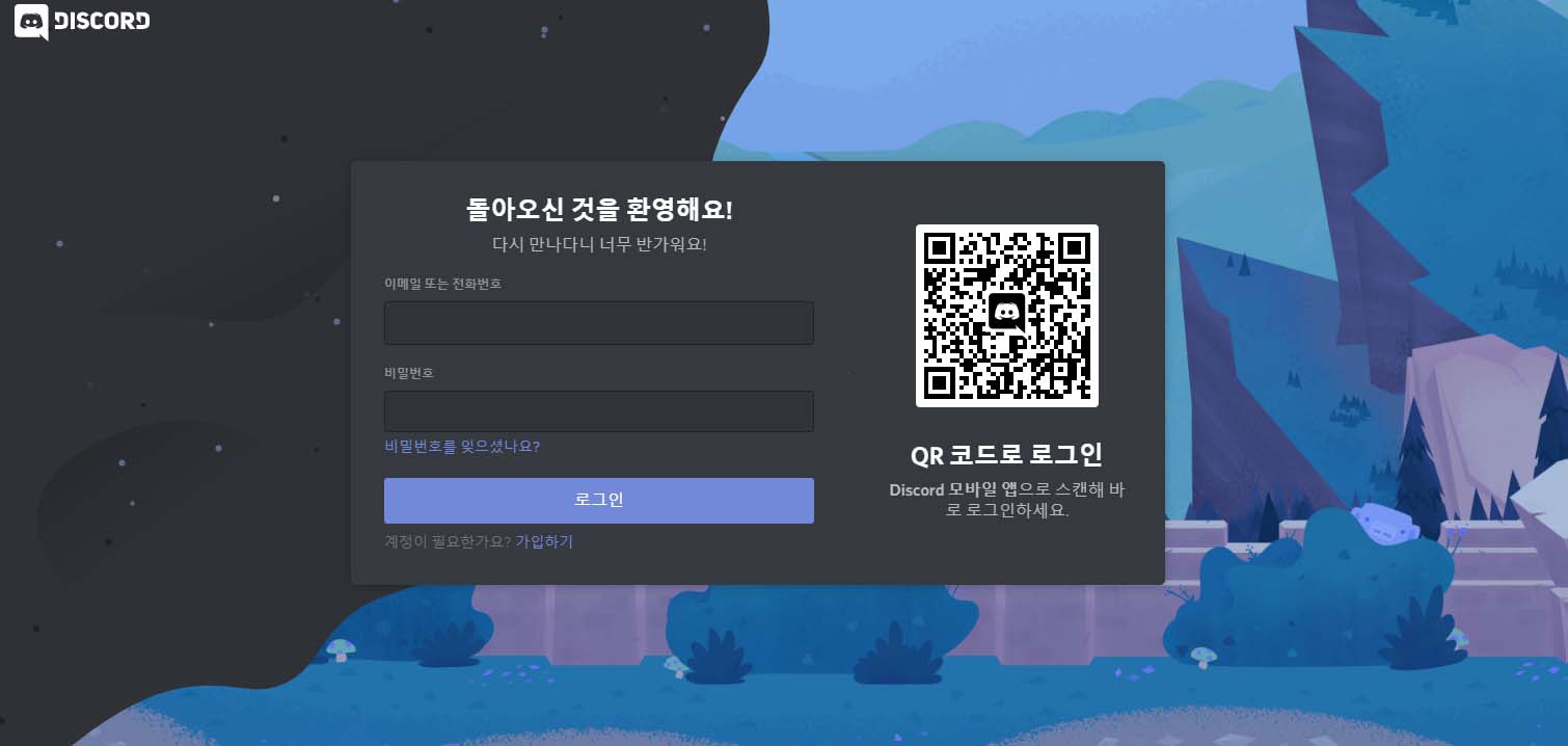 그러면 창이 이와 같은 사진으로 이동합니다. 채팅 서버에 히드라를 추가할 디스코드 계정으로 로그인을 해주세요.