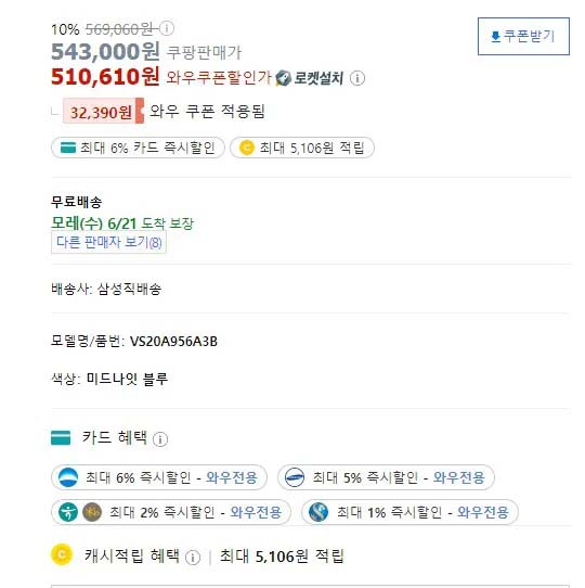 카드 할인에 와우 쿠폰 사용하고 적립하여 구매를 하실 경우, 다른 쇼핑 사이트 비교하여 사는 것보다 더욱 저렴하게 구매하실 수 있습니다.