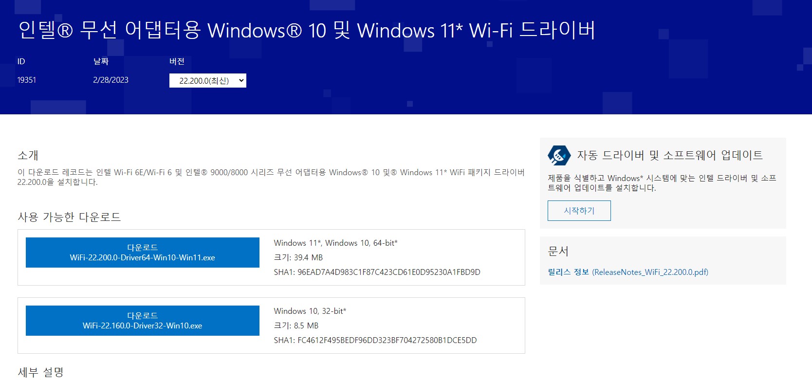 그리고 인터넷에서 다운을 받아야 하므로 네트워크를 유선으로 연결하거나 다른 pc에서 드라이버를 다운로드하여 usb에다가 옮겨서 노트북에 설치하시면 됩니다.