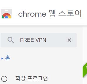 일단 크롬에서 구글 검색창에 '크롬 웹 스토어'라고 검색을 합니다. 웹 스토어 들어오시면 검색바에 Free Vpn(무료 vpn) 등의 확장 프로그램을 추가 또는 다운로드 버튼을 클릭합니다.