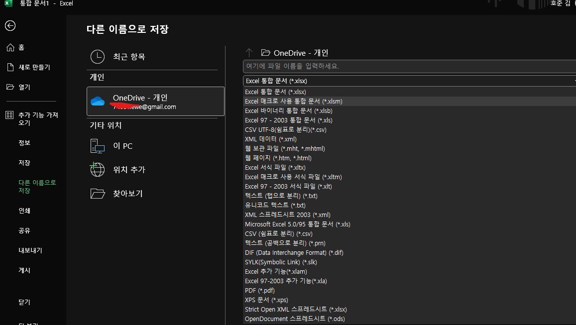 엑셀에는 다양한 파일 형식을 지원하지만 일부 형식은 작업물에 따라 저장을 지원하지 않을 수 있습니다. 그러므로 엑셀 기반의 파일 형식으로 바꾸어보시길 바랍니다.