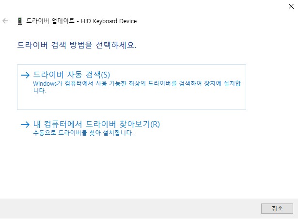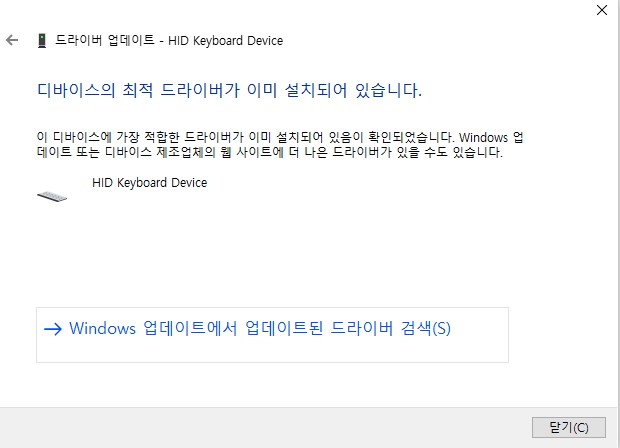 키보드가 최신 드라이버로 업데이트하였거나 이미 최적의 드라이버가 설치되어 있습니다.라고 나온다면 다음 방법을 시도해 봅시다.
