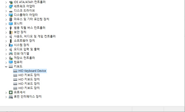 이러한 키보드의 드라이버 재설치 과정에서 자판 오류가 해결되실 수 있습니다. 디바이스를 드라이버 재설치로 재구성한다고 보시면 되겠습니다.