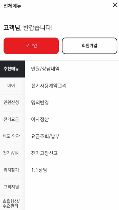 모바일로 전기요금 조회하기