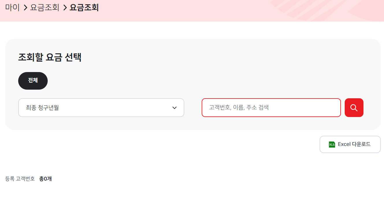 그러면 이렇게 나올텐데, 하단 '등록 고객번호'에 있는걸 선택해서 요금 조회가 가능할 겁니다.