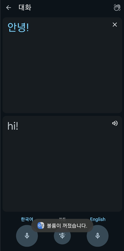 이외에도 파파고 메인화면에서 하단의 '대화'를 탭하면 이런 화면이 나옵니다.