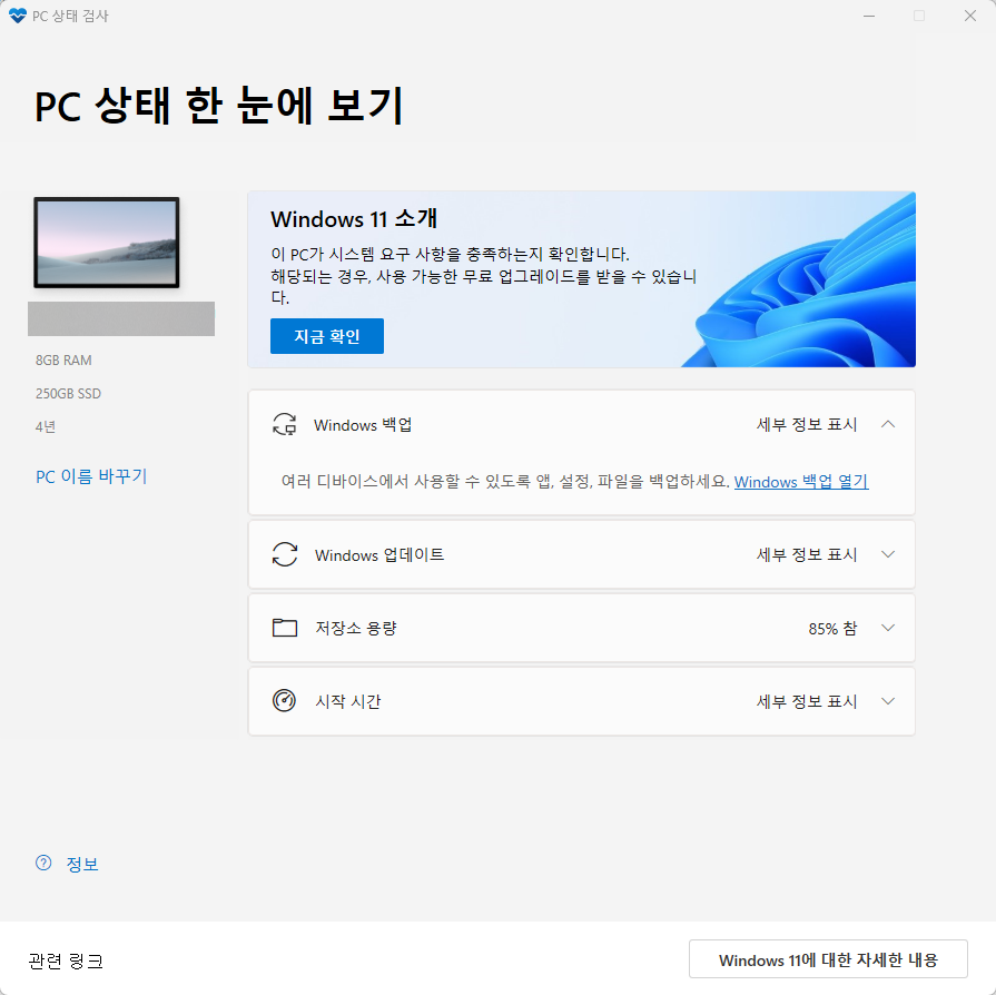 마이크로소프트의 공식 프로그램인데, 'PC 상태 검사'라고 합니다.
