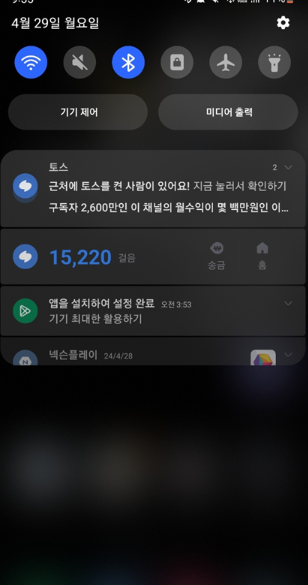 - 상단 바를 두 손가락으로 아래로 스와이프