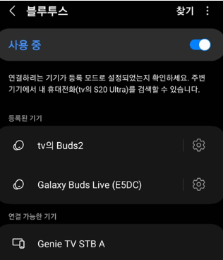 - 블루투스 아이콘 탭 → 켜기