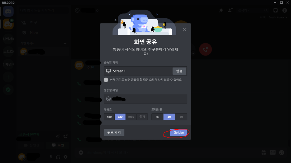 디스코드의 화면 공유를 해결하고 화질에 문제가 있을 경우 밑에 글을 참조하세요.