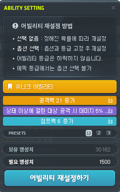 아란에게 최적인 효율적인 어빌리티는 옵션이 바뀌지 않았습니다.
