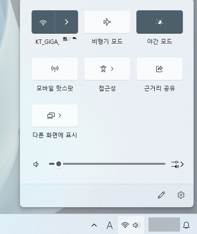 추가로 위와 같이 우측 하단의 툴바를 이용해서 WIFI 연결하는 것도 가능합니다.