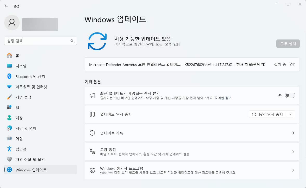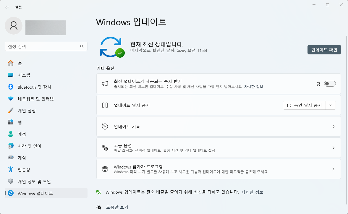 업데이트 확인을 해보고 만약 남은 업데이트가 있다면, 컴퓨터를 껐다가 켜서 업데이트를 진행합시다.