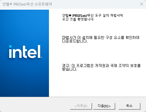 다운로드된 파일을 실행하면 이렇게 드라이버 설치 마법사가 실행됩니다.